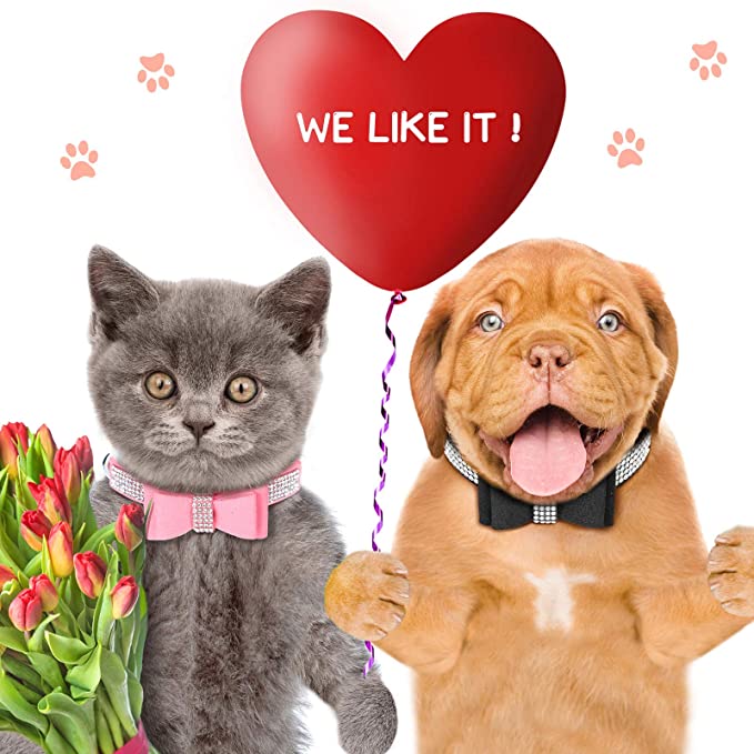 ♥ ရိုင်ဖယ်and bow design: the pet dog collars contain 2 designs, including simple rows of rhinestones collar and rhinestones collar with double-layer bow, presenting beautiful and shiny effect when under the light, making your pets more charming and elegant