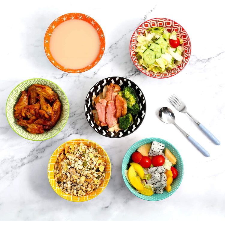· အစားအစာ ဘေးကင်းလုံခြုံသော ပစ္စည်းများ- စီရီရယ် ကြွေပန်းကန်လုံးများသည် ကုန်ပစ္စည်းကိုယ်တိုင်၏ လက်တွေ့ကျမှုကို ထည့်သွင်းစဉ်းစားရုံသာမက သင်စားသည့်အခိုက်အတန့်တိုင်း ကျန်းမာရေးနှင့် ညီညွတ်ကြောင်း သေချာစေရန် ပစ္စည်းများ၏ အဆင့်တိုင်းတွင် စစ်ဆေးမှုများ ပြုလုပ်ပါသည်။ ဤရောင်စုံကြွေပန်းကန်လုံးများကို ပရီမီယံ ခဲ-အခမဲ့နှင့် အဆိပ်မရှိသော ကြွေထည်အမျိုးအစားဖြစ်သည့် တာရှည်ခံကြွေထည်များဖြင့် ပြုလုပ်ထားသည်။ ဟင်းချို၊ စီရီရယ်၊ ခေါက်ဆွဲ၊ အဆာပြေ သို့မဟုတ် ရေခဲမုန့် ကျွေးရန် ပြီးပြည့်စုံသော အရွယ်အစား