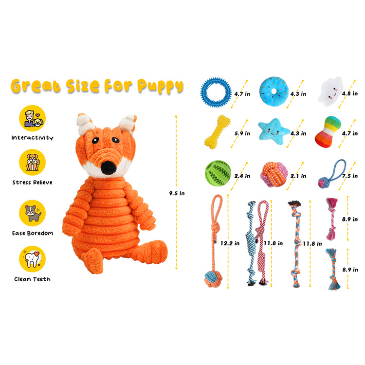 · [ အရည်အသွေးမြင့် Plush နှင့် ချစ်စရာ Squeaky Toys ] plush ကစားစရာများသည် အရည်အသွေးမြင့် ထည်များဖြင့် ပြုလုပ်ထားပြီး တပ်ဆင်ထားသော squeaker သည် ခွေးကလေး၏ အာရုံကို ဆွဲဆောင်နိုင်မည်ဖြစ်သည်။ ထို့အပြင်၊ စက္ကူခေါက်ဖြင့်ထည့်ထားသော fox ၏ကိုယ်အင်္ဂါသည် ပိုမိုဆွဲဆောင်မှုရှိပြီး ပျော်စရာကောင်းမည်ဖြစ်သည်။