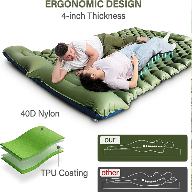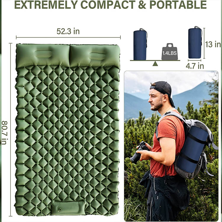 အိပ်ချိန် pad ဖြာစခန်းချခြင်းစခန်းချွန်လွှာစခန်းချခြင်း ဤသည်ပုန်းအောင်းနေသည့်လူနှစ် ဦး စခန်းချနေရာချထားသည့်နေရာသည်လျှောကျခြင်းကိုကာကွယ်ရန်ဆန်းသစ်သောခြေထောက် - ဆေးသိုလှောင်ထားသောဒီဇိုင်းနှင့်ကျယ်ဝန်းသည့်အိပ်စက်ခြင်းနေရာကိုပေးသည်။ အလွန်ပေါ့ပါးသောဖြေရှင်းနည်းတစ်ခုအနေဖြင့်၎င်းသည်မပြည့်စုံသောသယ်ဆောင်နိုင်မှုကိုဖြန့်ဖြူးပေးပြီးမောင်နှံစုံနှင့်သူငယ်ချင်းများအတွက်နှစ်သိမ့်မှုဝေမျှသည်။