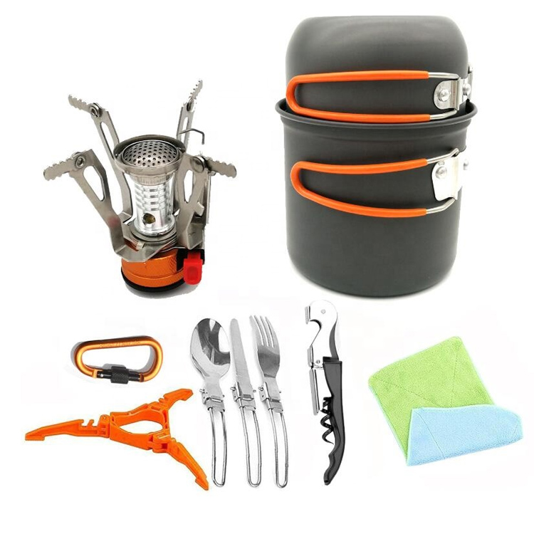 Outdoor အိတ်ဆောင်စခန်းချခြင်း Hiking Backpacking Cookware Set