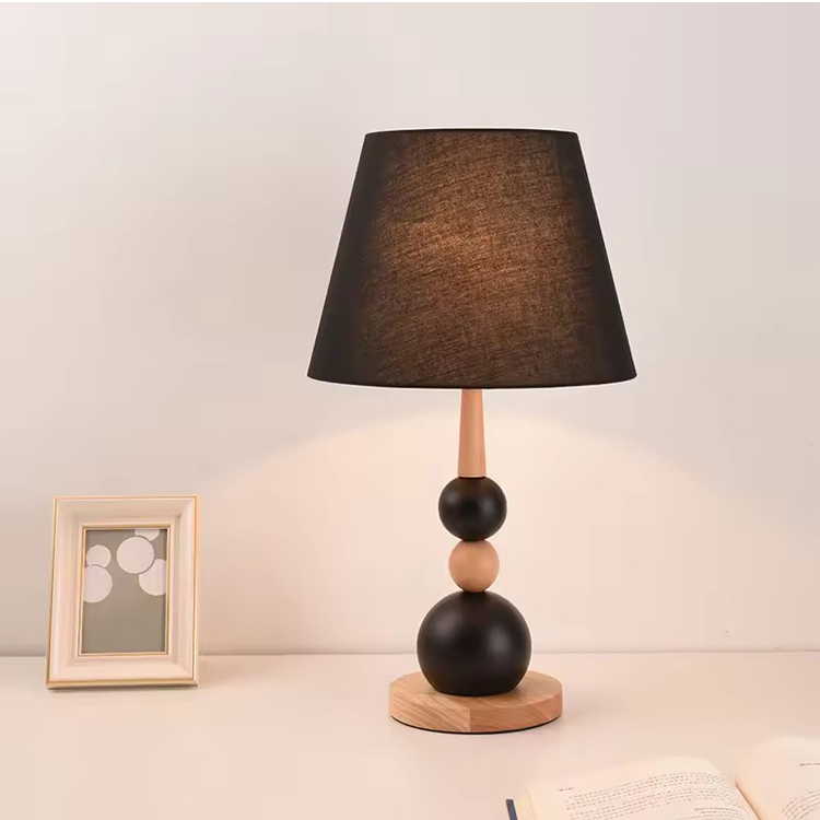 ရိုးရိုးရှင်းရှင်း အနက်ရောင်ဘောလုံး Retro သစ်သားအိပ်ယာဘေး အနိမ့်ဆုံး စားပွဲတင်မီးအိမ်