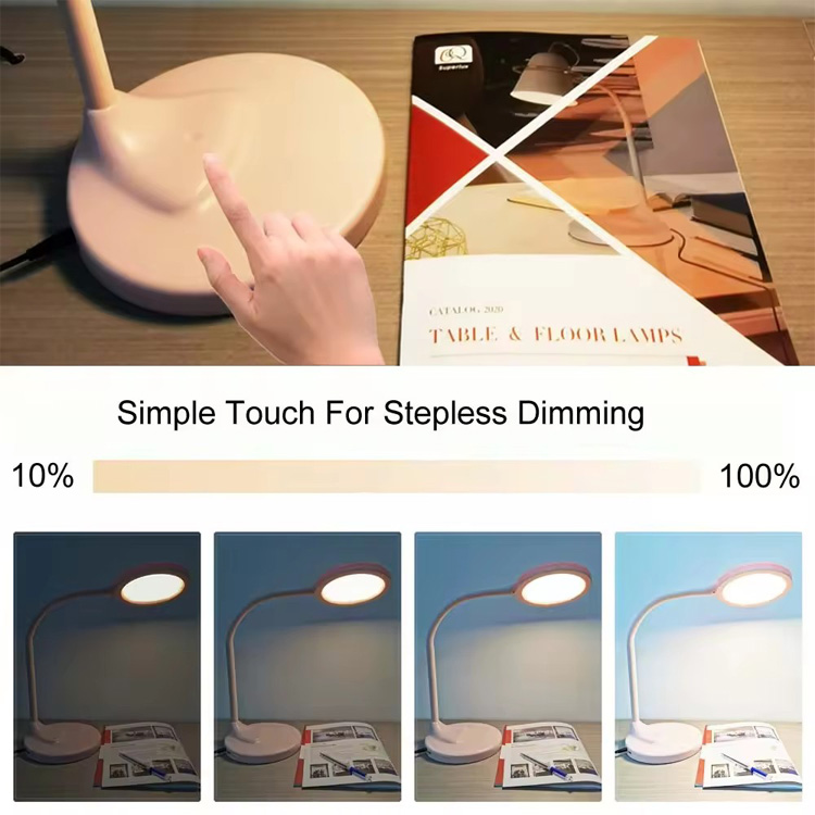 ✅ Stepless Dimming: ဤ LED စားပွဲတင်မီးအိမ်သည် ခြေလှမ်းမဲ့အလင်းမှိန်ခြင်းအတွက် ရိုးရှင်းသော ထိလွယ်ရှလွယ်သော ထိန်းချုပ်မှုပါရှိကာ သင့်လိုအပ်ချက်များနှင့် ကိုက်ညီစေရန် တောက်ပမှုကို 10% မှ 100% အထိ ချိန်ညှိပေးနိုင်ပါသည်။
