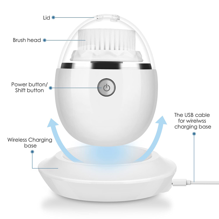 ကြိုးမဲ့အားသွင်းခြင်း လျှပ်စစ် Sonic Vibrating Facial Cleansing Brush